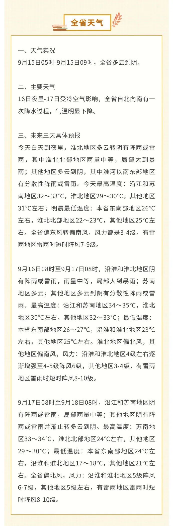 刚刚@徐州气象发布一周天气综述一周天气综述:降温+降雨 根据最新气象资料分析受冷暖气流影响本周我市以阴雨天气为主其中周初(15-16日)降雨过程较为明显局部地区可达暴雨其间可伴有雷电、局地短