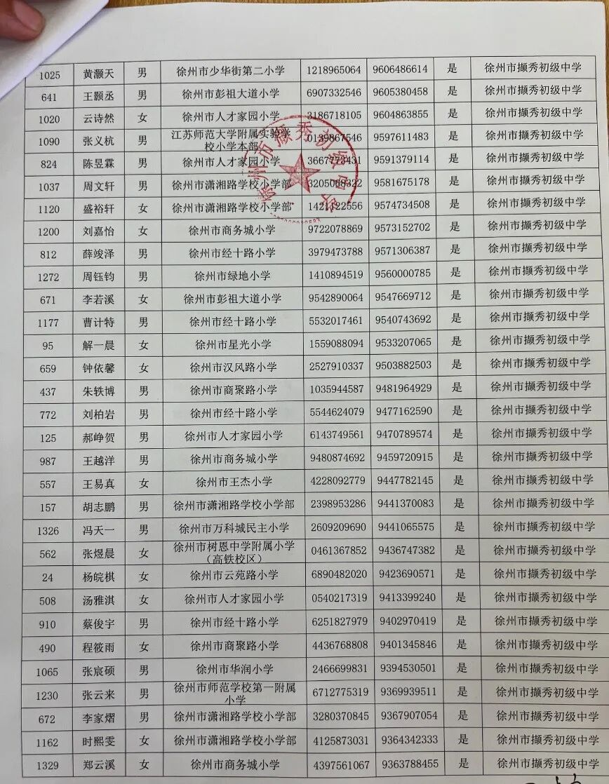 徐州市撷秀初级中学徐州开发区侯集实验中学徐州市华杰实验学校徐州市百川学校徐州市树恩中学(高铁校区)电脑派位▼结果出炉▼徐州市撷秀初级中学电脑派位录取名单⬇️⬇️点击查看大图徐州开发区侯集实验中学电脑派