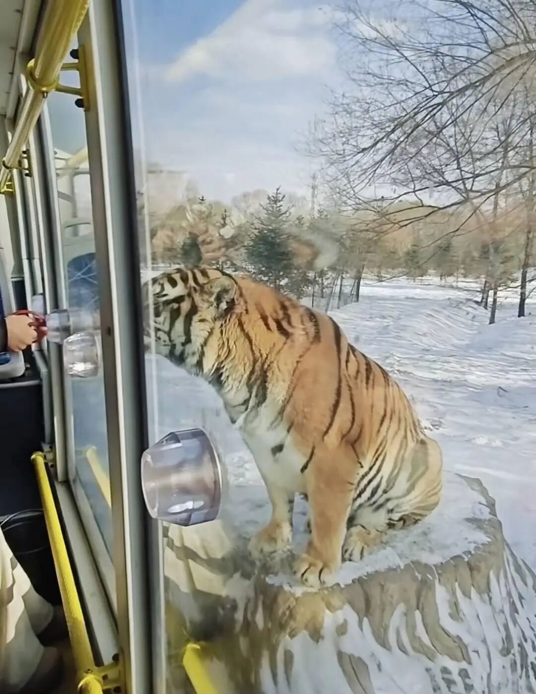 游客正在喂东北虎游客在景区里排队。图据黑龙江东北虎林园公众号园区喂养的东北虎。图据黑龙江东北虎林园公众号