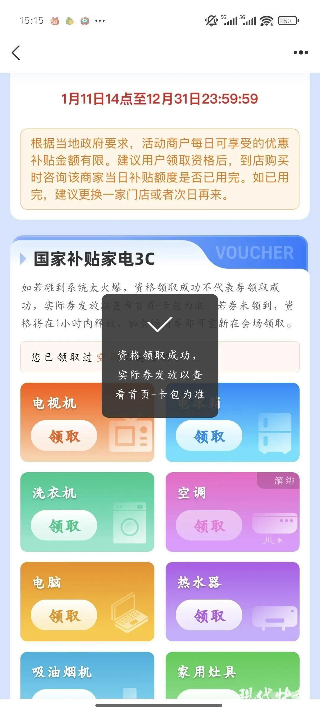 最近,618大促正在火热开展,许多消费者都准备使用“国补”叠加平台优惠,购买心仪、实惠的商品。但有消费者发现,江苏家电3C以旧换新补贴无法领取和使用。现代快报记者多方了解发现,江苏“国补”活动仍会持续