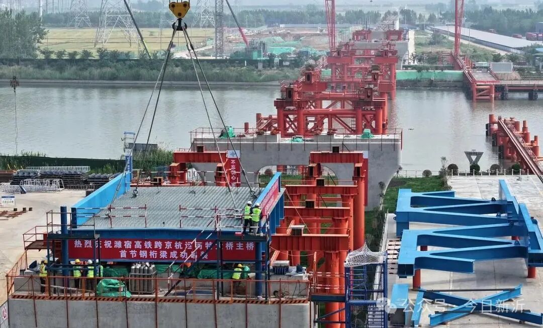 潍宿高铁再次传来新消息!近日新建潍坊至宿迁高速铁路(以下简称潍宿高铁)跨京杭运河特大桥主桥首节钢桁梁成功吊装到预定位置标志着大桥建设正式进入上部结构施工新阶段跨京杭运河特大桥主桥位于江苏宿迁境内,是潍
