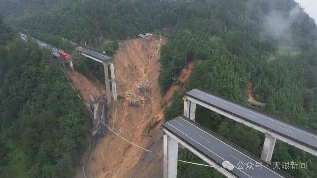 今日(6月24日),G76厦蓉高速格都线广西至贵州都匀方向K1264处(贵州省三都县境内)猴子河特大桥,因持续强降雨诱发山体滑坡,导致引桥发生垮塌。南都记者从当地获悉,桥下有3台车辆,为附近村庄的施工