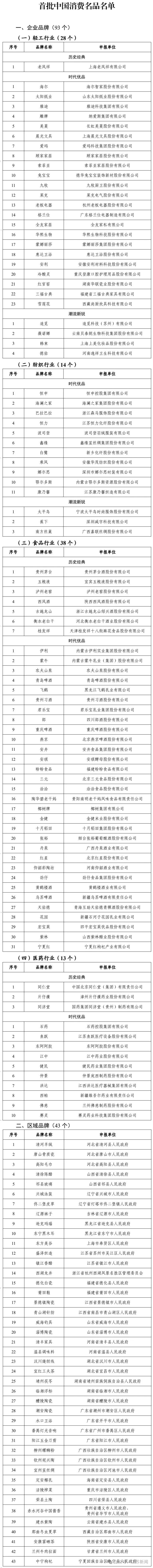 记者4月11日从工业和信息化部获悉,为贯彻实施中办、国办印发的《提振消费专项行动方案》,工业和信息化部近日发布首批中国消费名品名单,包括企业品牌93个、区域品牌43个,还公布了中国消费名品成长企业42