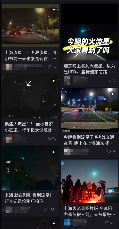 昨晚(4月3日),多位上海市民拍到天空出现不明物体,该物体呈绿色,且迅速划过天空,神似流星。不少网友都记录下了这一转瞬即逝的壮丽景象网友:还以为是谁家放的烟花!通常火流星的亮度非常高,会像条闪闪发光的