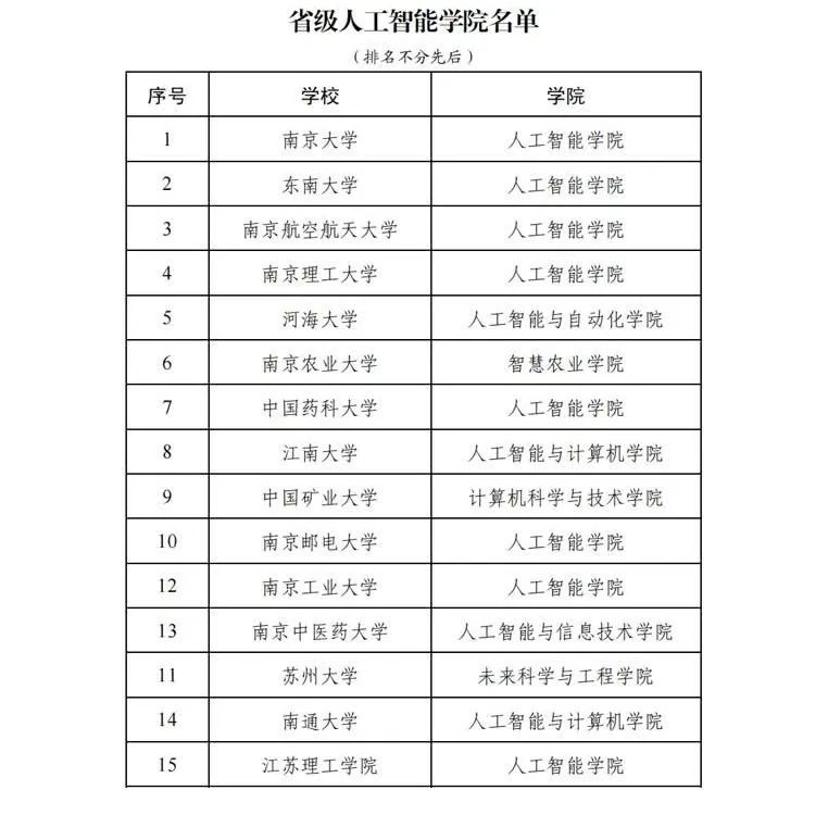 3月12日江苏省教育厅发布立项建设15个省级人工智能学院和15个省级工业软件学院名单包括南京大学、东南大学等高校入选👇人工智能是新一轮科技革命和产业变革的重要驱动力量,也是助推新时代高等教育综合改革