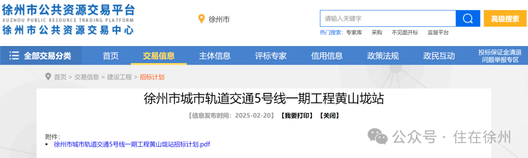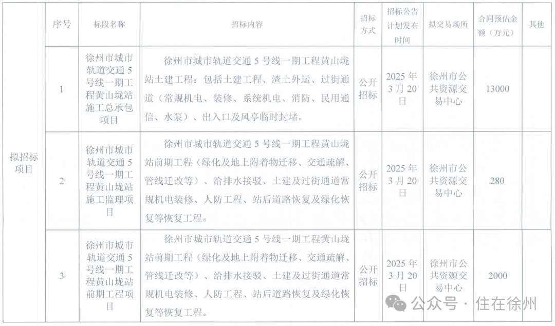 徐州市公共资源交易中心发布徐州地铁5号线一期工程黄山垅站工程招标计划,将于3月20日正式发布招标。下二层岛式车站,埋深约16.35米,车站长度约185米, 车站宽约21.7-25.8米,车站共设2个出