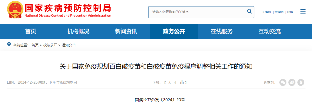 重要提醒!!孩子们打的一类疫苗有调整!!!根据《关于国家免疫规划百白破疫苗和白破疫苗免疫程序调整相关工作的通知》(国疾控卫免发〔2024〕20号)要求:自2025年1月1日起,在全国范围内实施,将现行