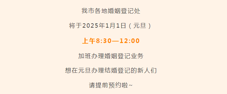 近日有网友问元旦当天可以办理婚姻登记业务吗?多地婚姻登记处明确元旦正常上班为新人办理结婚登记上海上海市民政局网站发布的《婚姻登记机关2025年部分节假日放假调休安排的通知》显示,该市婚姻登记机关202