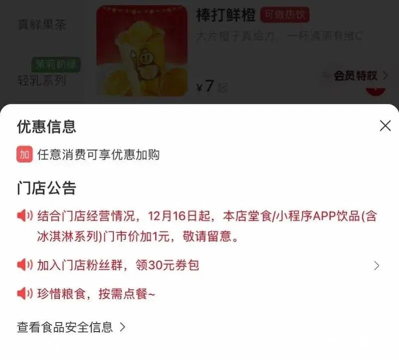 蜜雪冰城涨价了。12月16日,广州多家蜜雪冰城门店在小程序上发布公告称,“综合门店经营情况,12月16日起,本店堂食|小程序APP饮品(含冰淇淋系列)门市价加1元”。记者从蜜雪冰城方面获悉,此次涨价涉