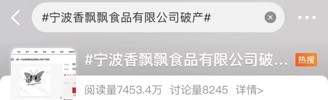 昨天(12月15日),关于“香飘飘”的话题冲上热搜。不少网友表示吃惊:从小喝到大的奶茶怎么了?宁波香飘飘食品有限公司破产网友热议阿里拍卖破产强清平台显示,宁波香飘飘食品有限公司已破产,由其破产管理人进