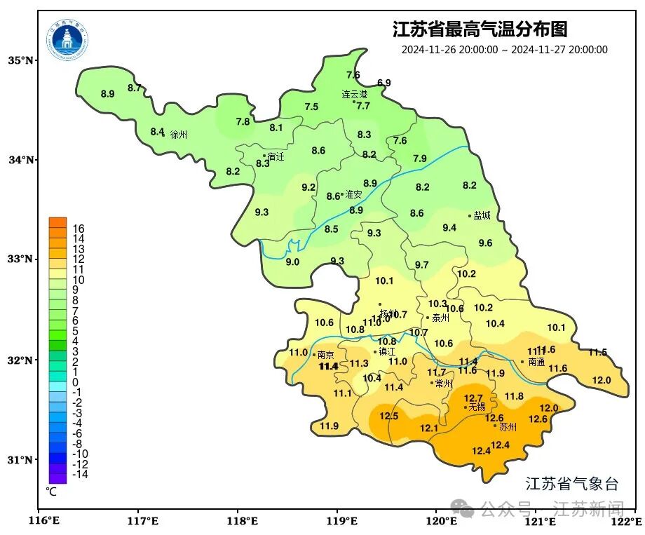 入冬啦!截止27日除南京、苏州外江苏其余地区都已经入冬了昨天我省最高气温沿淮及淮北地区7-8℃长江以南地区11-12℃其它地区9-10℃最高无锡市区12.7℃最低西连岛6.9℃今天气温依然