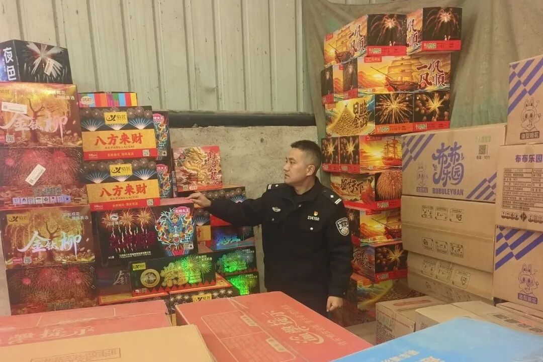 近日,铜山分局“铜心义警”联盟成员在日常巡查中发现利国镇某村一厂房内存放大量烟花爆竹,随即向辖区派出所报告。铜山分局利国派出所立即组织警力开展核查。涉事厂房经核查成功查处一起非法储存烟花爆竹案件现场查