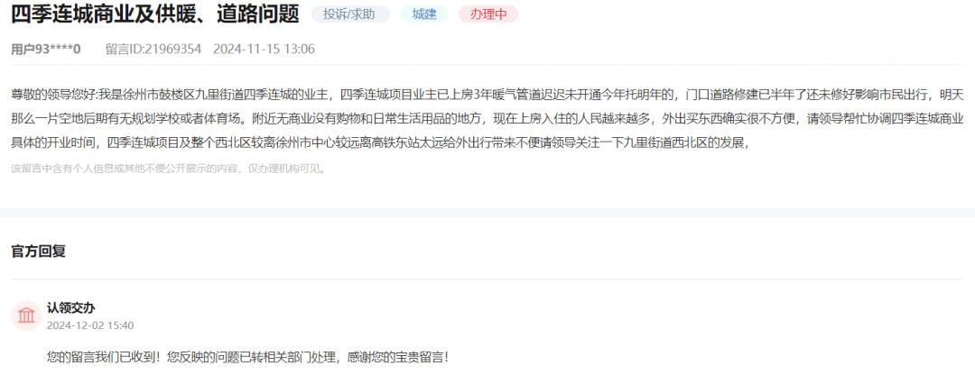 城置国际花园城三期居民:我们可以续缴重复缴费那肯定不行城置国际花园城三期居民向徐州广电《张慧帮问你》反映小区今年迎来了新物业但前物业公司撤场至今并未退还他们预缴的相关费用新物业入驻业主已预存的费用何时