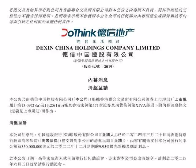 昔日的“中国房地产百强企业”、被称为“浙系房企四小龙”的德信中国,刚刚收到香港法院清盘令。德信中国,将成为继阳光城、佳源国际、中国恒大之后,中国第4家被清盘的出险房企,又一民营房企濒临退市...值得关