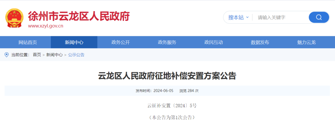 近日云龙区、贾汪区人民政府官网分别发布征地补偿安置方案公告和拟征收土地公告具体内容跟着晨小编一起来看看吧!01云征补安置〔2024〕5号根据《中华人民共和国土地管理法》第四十七条、第四十八条,《中华人