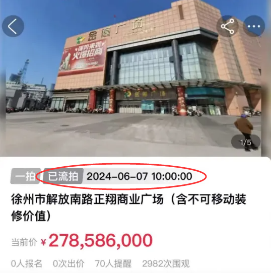 这几年,徐州商场开了这么多,生意好的又有几个?就在端午节前,徐州市中心又一个老牌商业遭遇拍卖,就是曾经有徐州的沃尔玛超市的那个商场。这个商业,就是位于和平路的正翔商业广场(金隆广场),起拍价约2.79