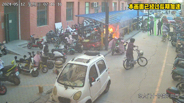 据内蒙古消防消息5月12日7时许内蒙古巴彦淖尔一小区楼下车棚内一辆电动自行车充电过程中自燃起火火势发展迅猛引燃周围停放的19辆电动自行车监控记录下起火全过程监控画面显示短短几十秒内火势迅速蔓延引燃了周